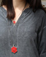 תליון פרח כסף מושחר- אדום