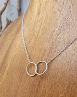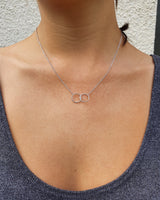 עדין 2 טבעות קטנות מחובר שרשרת, כסף מצופה רודיום,
