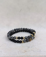 זוג צמידים גמישים עם אבני חן ,בשילוב חרוזים מצופים זהב
