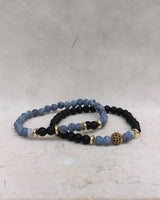 זוג צמידים גמישים עם אבני חן ,בשילוב חרוזים מצופים זהב