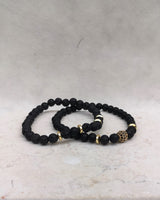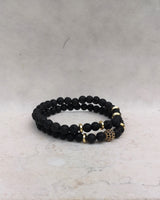 זוג צמידים גמישים עם אבני חן ,בשילוב חרוזים מצופים זהב