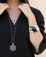 תליון- מזק מצופה כסף מושחר, חימר פולימרי וקריסטל סברובסקי