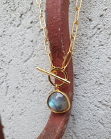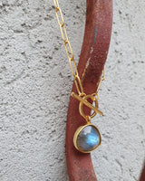 שרשרת כסף מקסימה מצופה זהב 18קראט, עם אבן חן לברדוריט