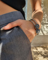 זמק מצופה כסף מחומצן, חימר פולימרי וגבישי סברובסקי.