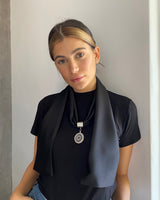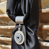 pendant: 3.5 c"m diameter, oxidized silver plated zamak,