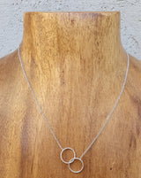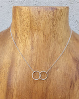delicate 2 small rings connected necklace, rhodium plated silver,