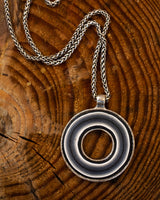 Pendant- silver plated zamak, polymer clay, 5 c"m diameter.