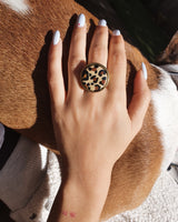 A beautiful hand made polymer clay ring, swarovski crystal stone,