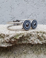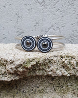 oxidized silver plated zamak, polymer clay and swarovski crystals.